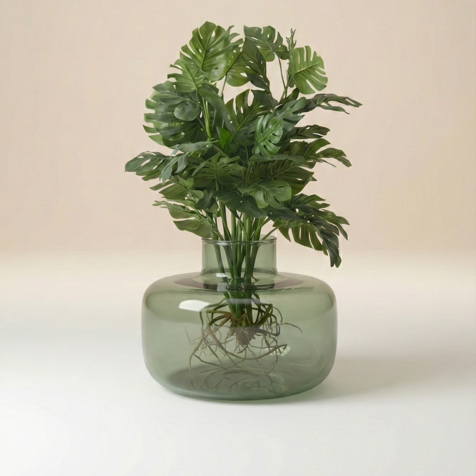 Green glass vase with a wide, rounded body 💚